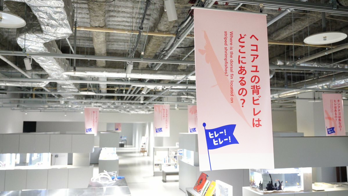 各階に点在する展示物に対して、「鰭展」の展示だということが