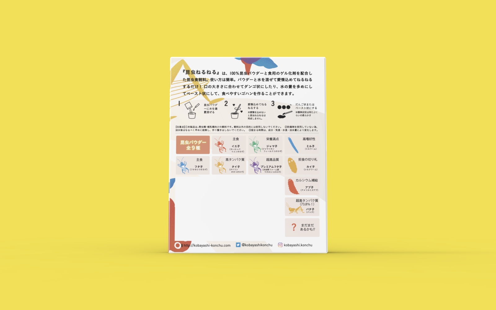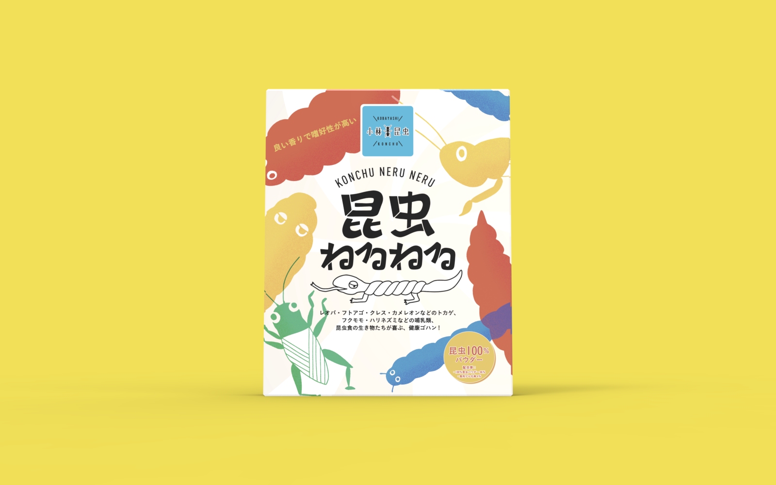 小林昆虫株式会社の開発したペット向けの昆虫飼料「昆虫ねるねる」のパッケージデザイン。