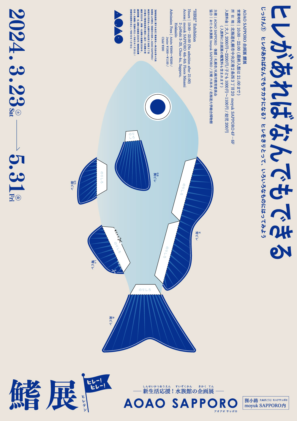 メインビジュアルはAOAO SAPPOROのカラーである青色を用いてサカナのグラフィックを作成し、